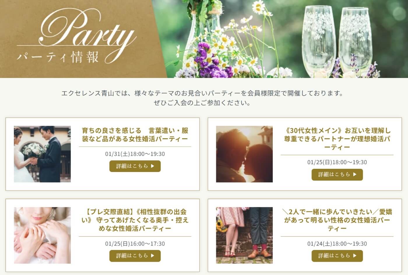 エクセレンス青山では会員限定の婚活パーティー・イベントが豊富なのも特徴です。