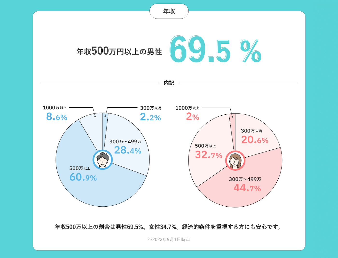 • 会員の11%が年収1,000万円以上とハイスペ率が高い