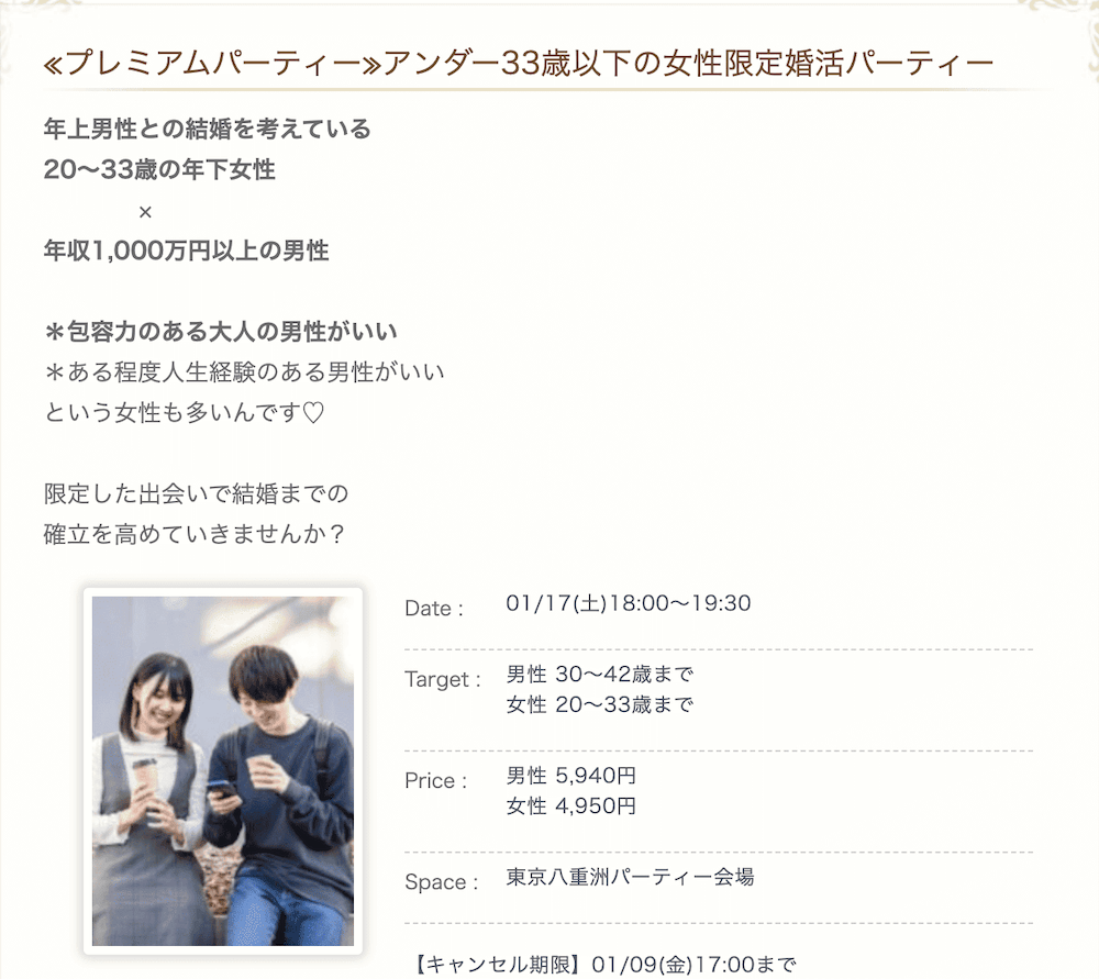 • 会員限定のハイクラス婚活イベントを頻繁に開催している