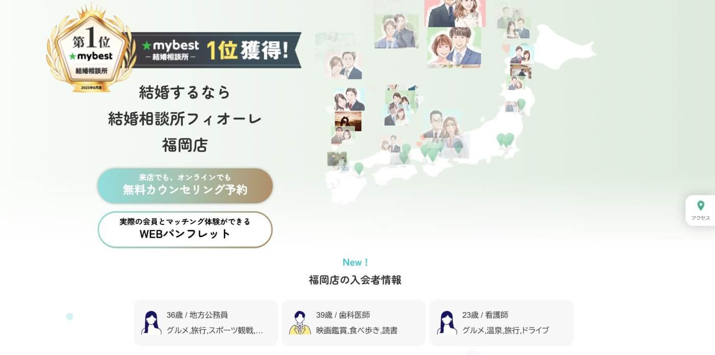 フィオーレ福岡店は、データマッチングと仲人サポートをバランス良く組み合わせた結婚相談所です。