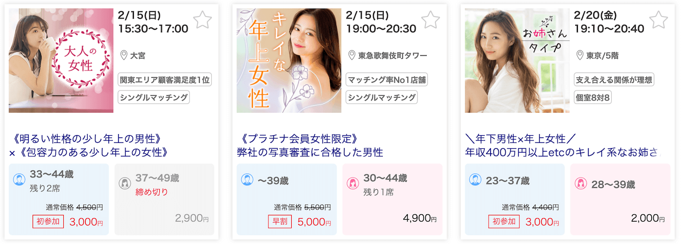 出典:IBJ Matching|年上女性と年下男性 婚活パーティー・街コン一覧