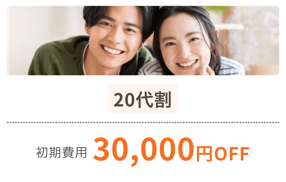 20代の利用者向けに、初期費用を30,000円抑えて始められる割引制度も用意されています。