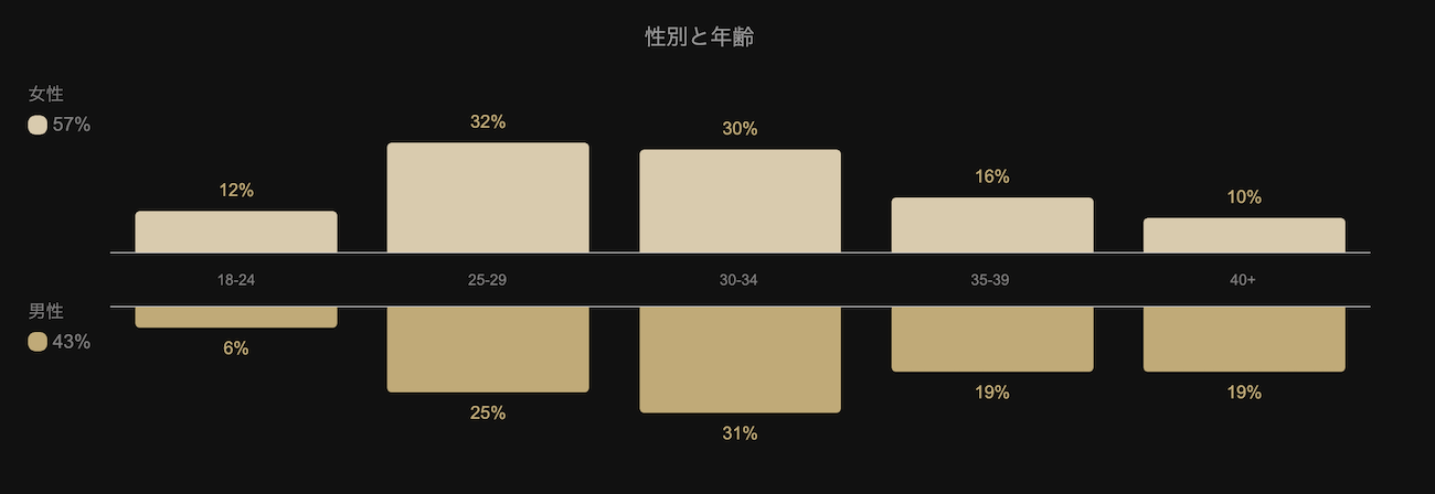 | 年齢層 | 【男性】20代後半〜30代後半 【女性】20代前半〜30代前半 |