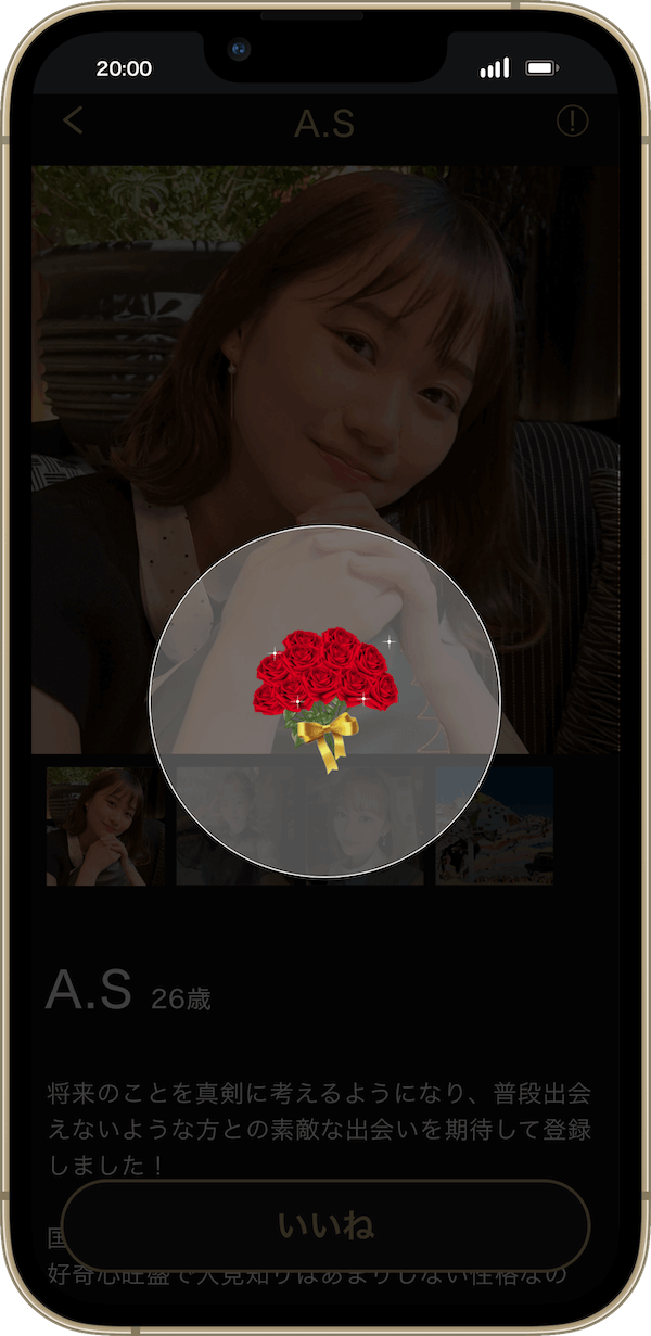 ただ、プロフィール写真の雰囲気が明らかに他の女性と違っていて、服装もシンプルなのに上品、表情も自然で作り込みすぎていない。思い切ってバラを送ったところ、すぐにマッチしました。